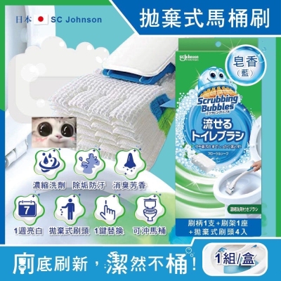 日本🇯🇵SC Johnson 一次性洗滌馬桶刷強力清潔劑刷桿(含支架+白花香替換刷頭4個) /替換裝(24入)
