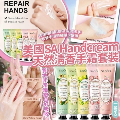21/11 。SA Handcream天然清香手霜套裝(一套5支)