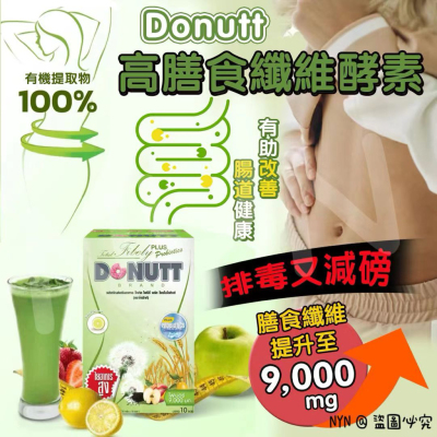 Donutt Total Fibely 高膳食纖維酵素,新配方膳食纖維提升至9,000mg及加入益生菌,有助改善腸道健康,提升免疫力,通過酵素排毒後減磅,所以對身體無害,兼由內到外排走毒素。