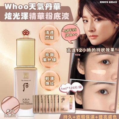 韓國 Whoo 后天氣丹華炫光澤精華粉底液SPF35 (1袋120片)